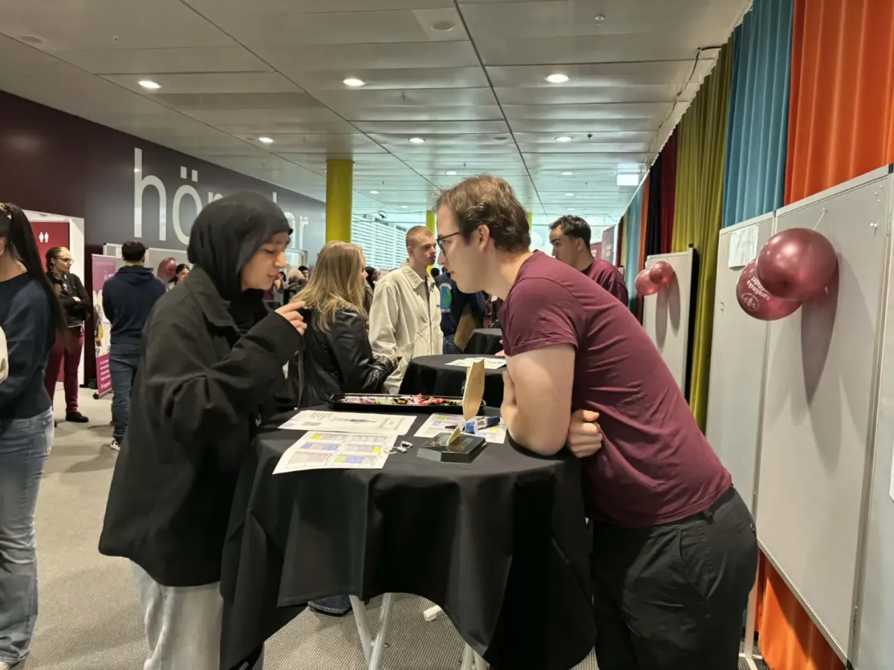 Runt om i lokalen stod studentrepresentanter från programmen, studievägledare och studentkårerna uppställda vid sina montrar, och fick många frågor från de nyfikna besökarna. Vid montern för röntgensjuksköterskeprogrammet var trycket högt.