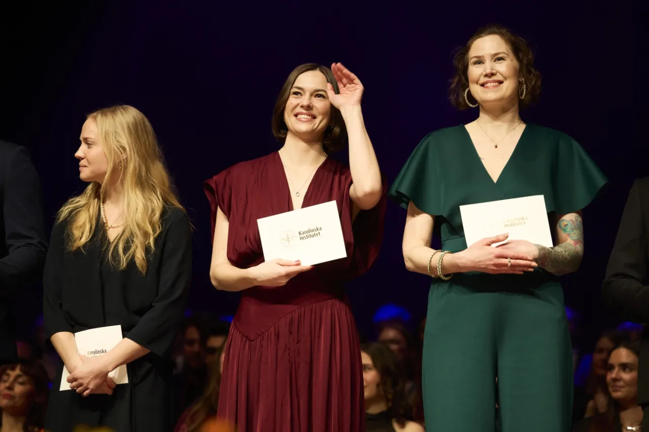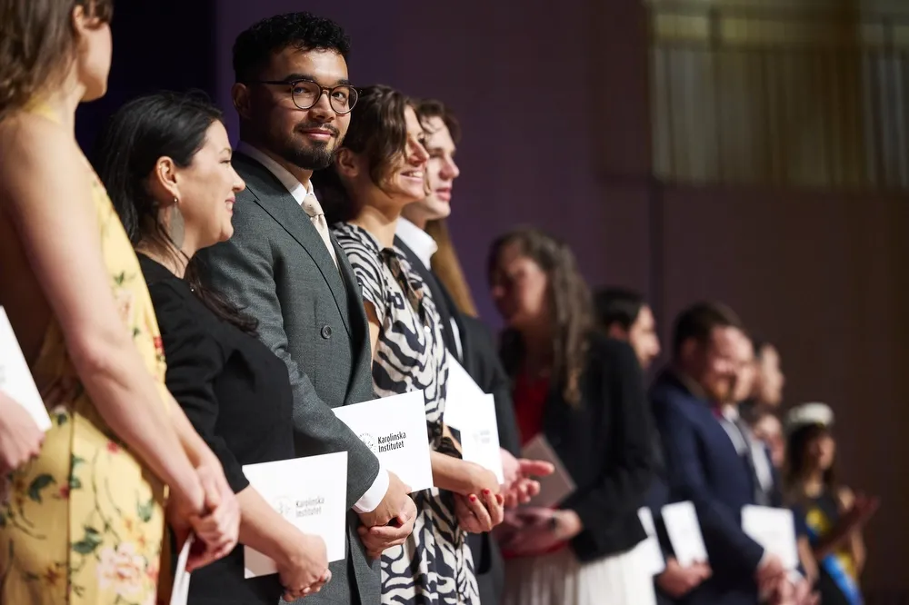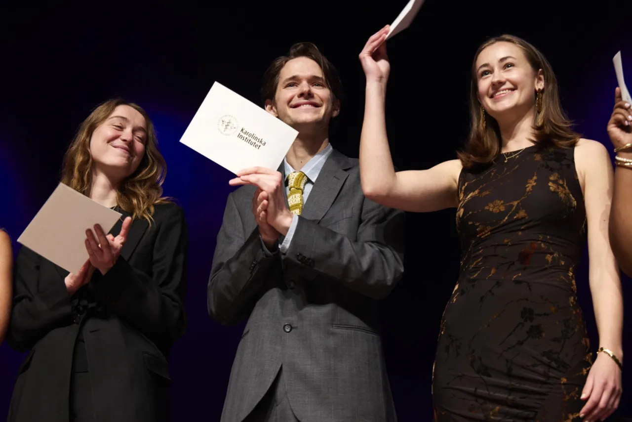 Sedan ropades studenterna fram en och en för att hämta sina vita kuvert, utdelade av Rune Brautaset, tillförordnad vicerektor för utbildning. Kuverten innehöll välgångshälsningar från KI och mottogs under jubel från familj, vänner och medstudenter.