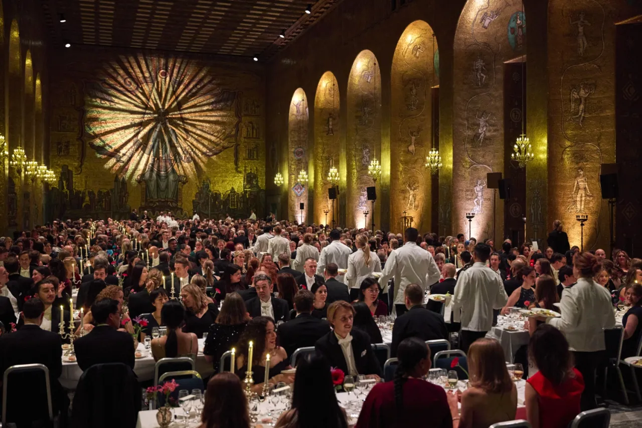 Nu väntade festbankett i Gyllene salen och kvällens gäster och huvudpersoner visade att de lyssnat på Robert Harris som avslutade sitt tal med orden: Låt festen börja!